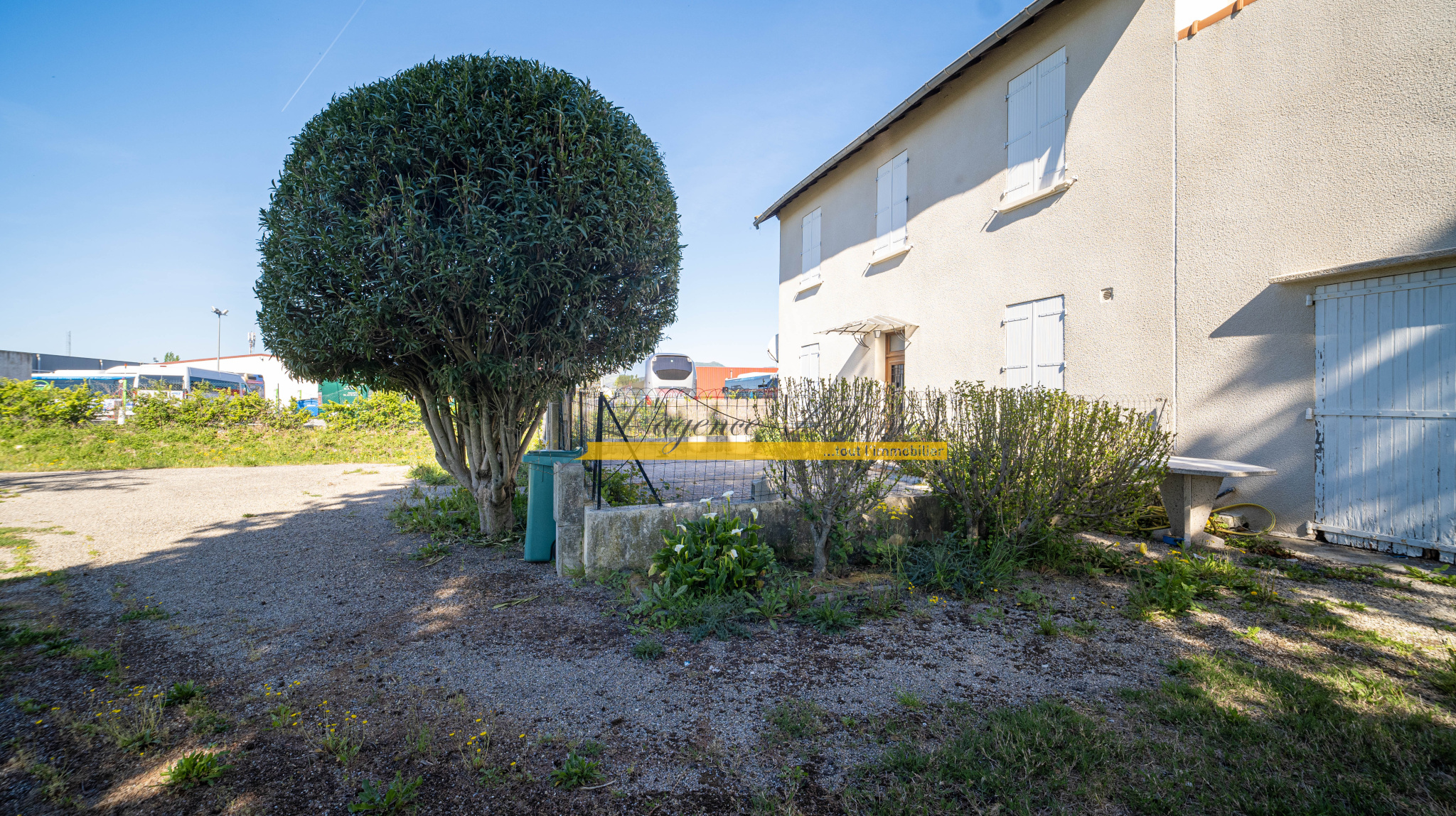 Cour clôturée. Places de stationnements privées devant le logement.